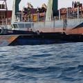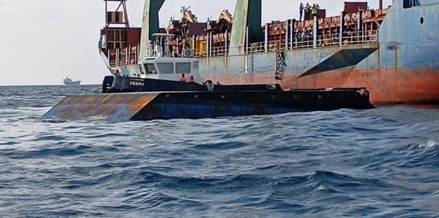 A landing craft capsizes at the Male' Commercial Port on November 2, 2025. (Photo/Marine Police)