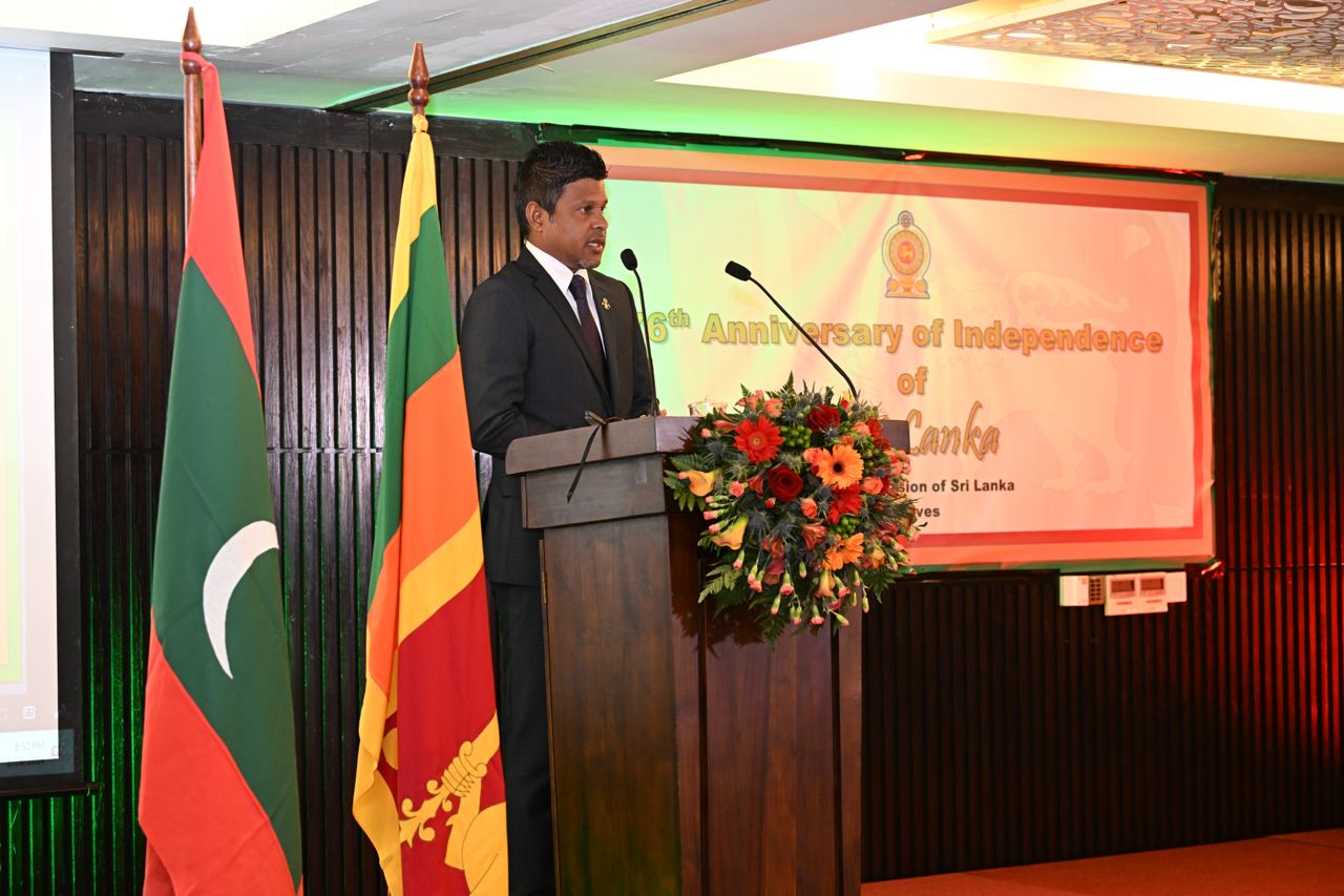 Vice President H.E. Hussain Mohamed Latheef on Wednesday stated that Maldives-Sri Lanka ties have existed long before our independence. The Vice President made the remarks while speaking at the reception to mark the 76th Anniversary of Independence of Sri Lanka.