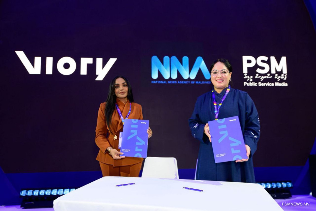 During her participation at the Summit, Chairperson Aminath Namza also took part in the official signing of a Memorandum of Cooperation (MoU) between PSM and Viory, a global digital media and news-exchange platform. The MOU establishes a collaborative framework aimed at strengthening news exchange, capacity building, and international visibility for Maldivian stories. Viory will provide PSM with free access to high-quality international content, which will be added to the National News Archive, and all Maldivian media outlets will be able to freely access and use this international content.
