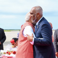 Indian Prime Minister Narendra Modi with Maldives President Dr Mohamed Muizzu at Republic Square, Male' on July26,2025. (X Photo/Narendra Modi)