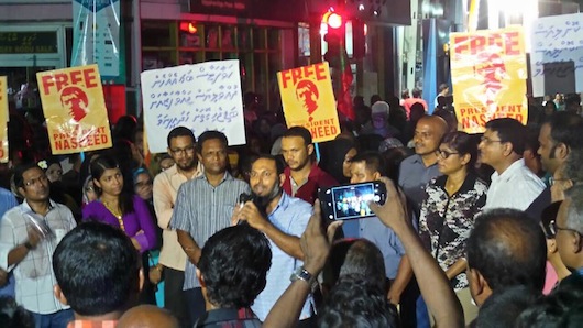 Speaking at last night’s protest by the “Maldivians against brutality” alliance, Imran referred to President Abdulla Yameen urging the opposition to prove allegations of the government’s unlawful actions at court and to file complaints of alleged rampant corruption at the Anti-Corruption Commission (ACC).