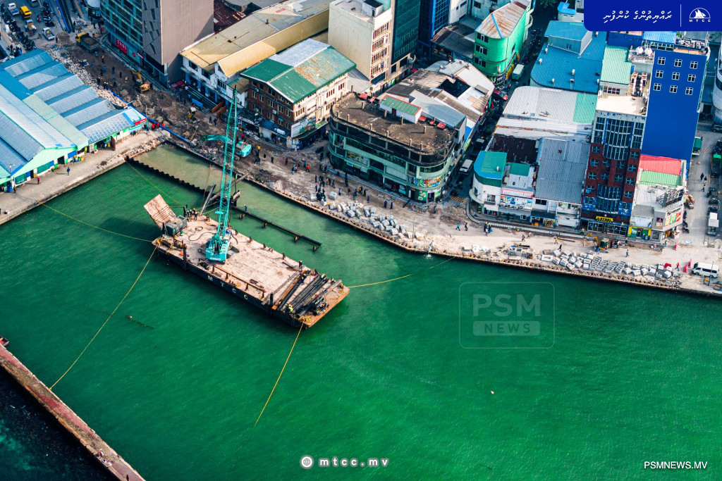 Significant infrastructure upgrades along a key route in Male’ City are currently progressing, with Maldives Transport and Contracting Company (MTCC) reporting the completion of 38 meters of sheet piling work along the local market area’.