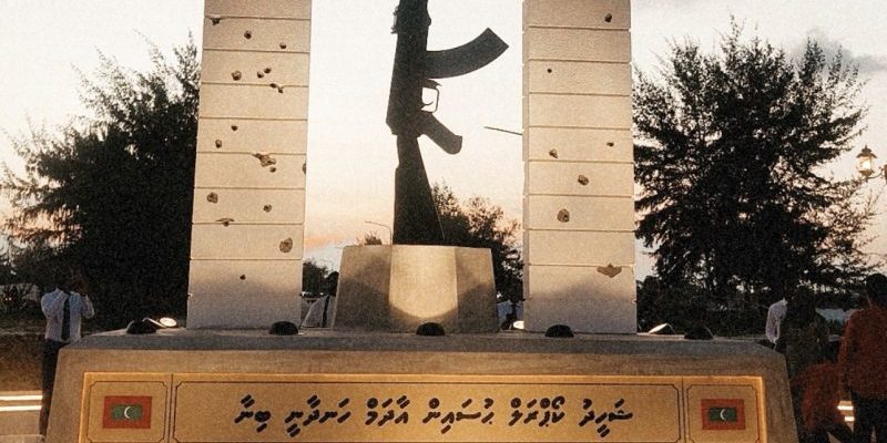 The special structure developed in Haa Dhaalu Kulhudhuffushi City in memory of the hero who was martyred while defending the Maldivian nation during the tragic attack of November 3, 1988, Shaheed Hussain Adam of Maavagē, Hdh. Kulhudhuffushi, was officially inaugurated this afternoon. This structure was developed under the initiative of Kulhudhuffushi City Mayor Mohamed Athif, with a design concept from the City Council and funded by the Council’s budget, to keep alive the memory of Corporal Hussain Adam’s great sacrifice for the nation and to showcase the hero’s courage and national love as an example for future generations. The structure was inaugurated this afternoon at the ceremony by Mayor Mohamed Athif and, representing the family of Martyr Hussain Adam, Ahmed Adam, Aishath Yumna Ahmed, and Fathimath Neema Abdul Rasheed. The structure was designed to symbolize the AK-47 rifle and the bullet-hit wall that Martyr Hussain Adam was holding that day, and when viewed from above, it resembles a shield. Furthermore, the structure is established in Bandara Maidhaan, the area where boats used to dock in Kulhudhuffushi, which was the last place Martyr Hussain Adam spent time in the island before departing for Malé. This structure will serve as a place to renew the memory of all the heroes who sacrificed their lives for the nation, a special structure that demonstrates that the blood of sacrifice shed on Maldivian soil by Corporal Hussain Adam, a hero the entire Maldives is proud of, is an unforgettable memory. It is certain that this structure, developed for the hero who bravely retaliated against the terrorists to defend this beloved homeland during that brutal terrorist attack, will serve as a place to renew the memory of the hero’s courage and national love as an example for future generations.