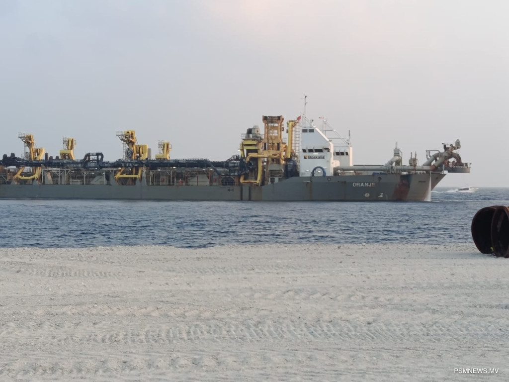 The reclamation project is being carried out using the trailing suction hopper dredger Orangeia, one of the largest dredgers brought to the Maldives. The vessel has the capacity to carry up to 22,000 cubic metres of sand at a time.